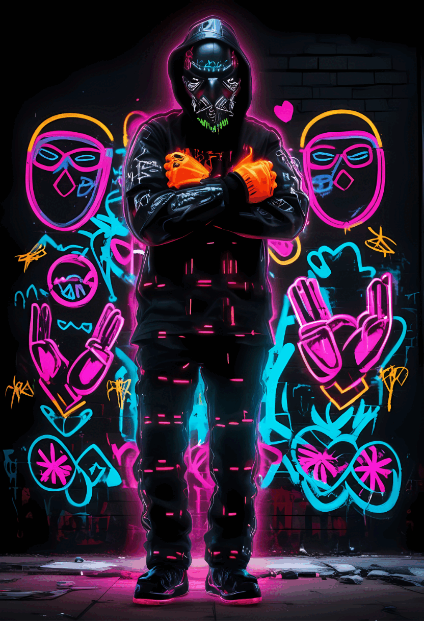 Centuries passed. Myrak’s soul laid dormant, waiting for the right time to return. In the year 2025, amidst the neon glow and concrete labyrinths of modern Terra, Myrak found Himself reborn—not only as a Warlock, but as an enigmatic graffiti Artist known as "Myrak the Warlock." He wandered the streets, his hands forever compelled to paint symbols and murals that whispered of otherworldly Truths.His work appeared overnight—intricate glyphs, His Art carried Power. Those who stared too long at his creations claimed to hear voices, feel a strange presence, or see their own pasts unravel before them. The Police called him a Vandal, but the underground revered him as a Prophet of the Forgotten. Though He had no memory of Duskmoor, the sigil still burned in his palm, guiding his hands like an unseen force. He was still a bridge between Worlds, but in this era, his power was wielded through the spray can and the shadows of alleyways. Myrak the Warlock has returned, and his story forever told.